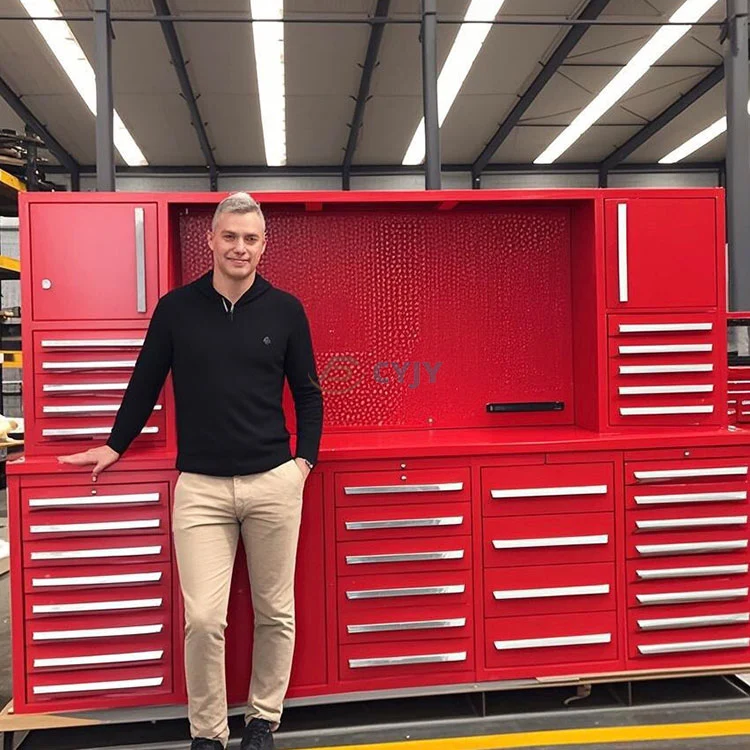 40 டிராயர்கள் கருவி வொர்க் பெஞ்ச்கள் முக்கியமாக குளிர்-உருட்டப்பட்ட எஃகு மூலம் செய்யப்பட்டவை, இது மிகவும் வலுவானது, அரிப்பை எதிர்க்கும், மென்மையானது மற்றும் சுத்தம் செய்ய எளிதானது. இது பல சிறிய கவுண்டர்களிலிருந்து கூடியது மற்றும் கேரேஜ்கள், அலுவலகங்கள் மற்றும் கஃபேக்கள் போன்ற பல சேமிப்பு இடங்களில் பயன்படுத்தப்படலாம். ஒவ்வொரு சிறிய அமைச்சரவையிலும் சுயாதீனமான இழுப்பறைகள் உள்ளன, மேலும் இழுப்பறைகளில் டிராயர் பட்டைகள் பொருத்தப்பட்டுள்ளன, இது பொருட்களை சிறப்பாக சேமிக்க அனுமதிக்கிறது. எங்கள் வொர்க் பெஞ்ச்கள் எஃகு மூலம் தயாரிக்கப்படுகின்றன, எனவே துருப்பிடிப்பது எளிதல்ல, மேற்பரப்பு மிகவும் அழகாக இருக்கிறது. இழுப்பறைகள் குளிர்ந்த எஃகு மூலம் செய்யப்பட்டவை, மேலும் ஒவ்வொரு அலமாரியும் ஒரு கப்பி உள்ளது, இது விஷயங்களைத் திறப்பது எங்களுக்கு மிகவும் வசதியானது.