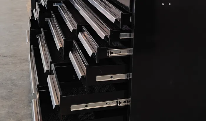 சைலண்ட் ஸ்லைடு ரெயில்கள்: கருப்பு மல்டி-செயல்பாட்டு கருவி அமைச்சரவை கனரக-கடமை அமைதியான ஸ்லைடு தண்டவாளங்களைக் கொண்டுள்ளது, மென்மையான இழுக்கும் நடவடிக்கை மற்றும் வலுவான சுமை தாங்கும் திறன் ஆகியவற்றைக் கொண்டுள்ளது.