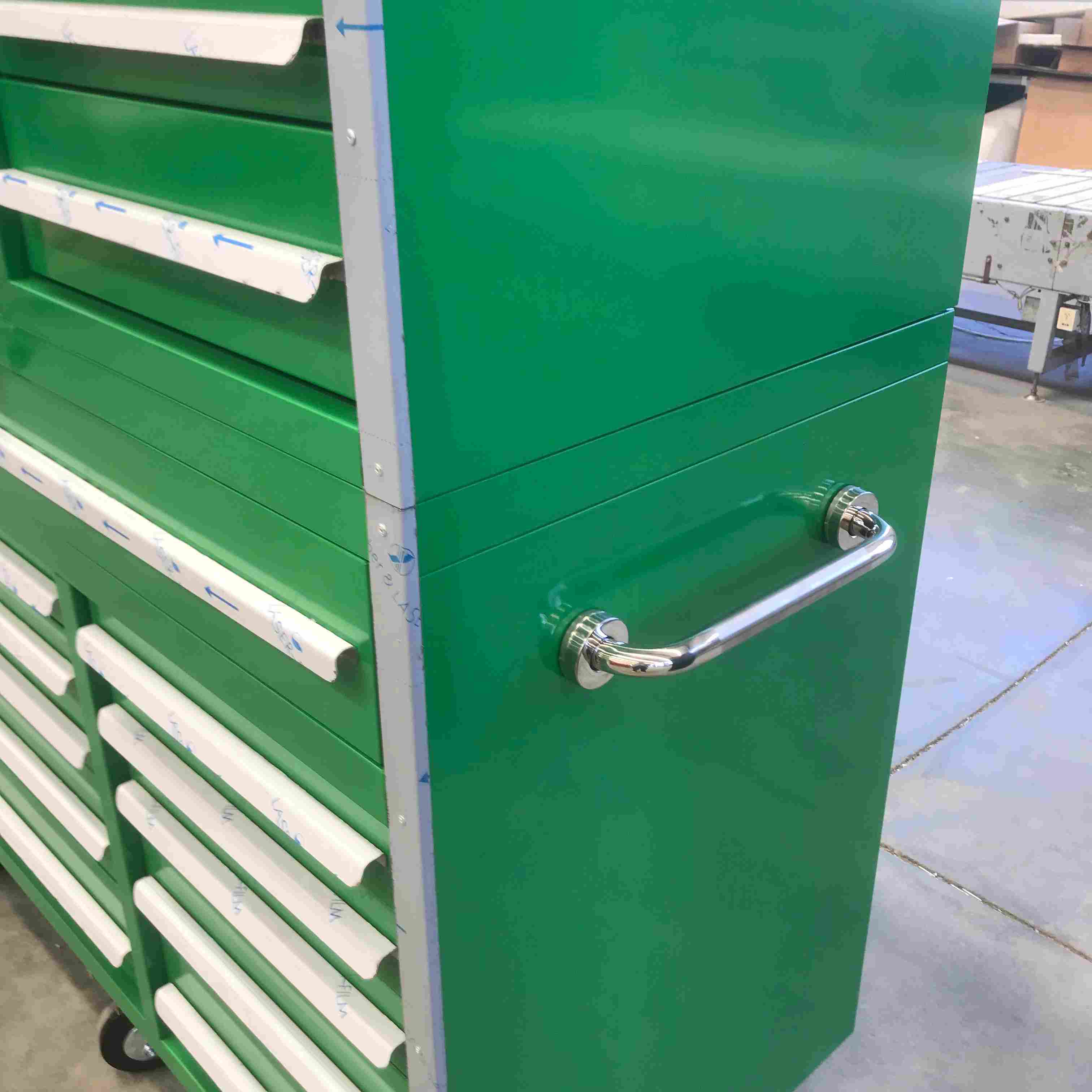 தொழில்துறை, பட்டறைகள் மற்றும் வீட்டில் கை கருவிகள், சக்தி கருவிகள், இயந்திர உதிரி பாகங்கள் மற்றும் சிறிய உபகரணங்களை சேமிக்க குளிர்ந்த உருட்டப்பட்ட ரோலி சேமிப்பு அமைச்சரவை பயன்படுத்தப்படுகிறது. அதிக சுமை திறன் மற்றும் மொபைல் வடிவமைப்பு தொழிலாளர்கள் வெவ்வேறு பணிநிலையங்களில் உருப்படிகளை எளிதாக அணுக அனுமதிக்கிறது.