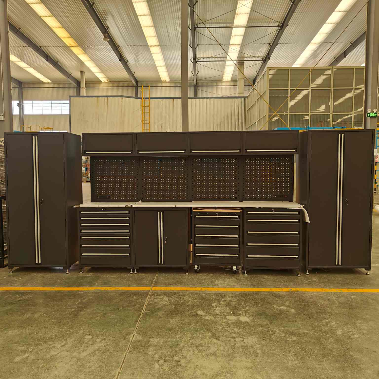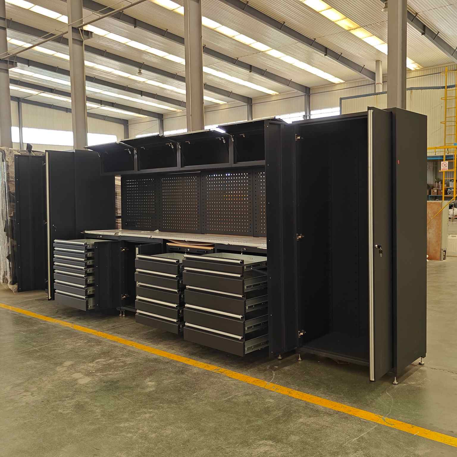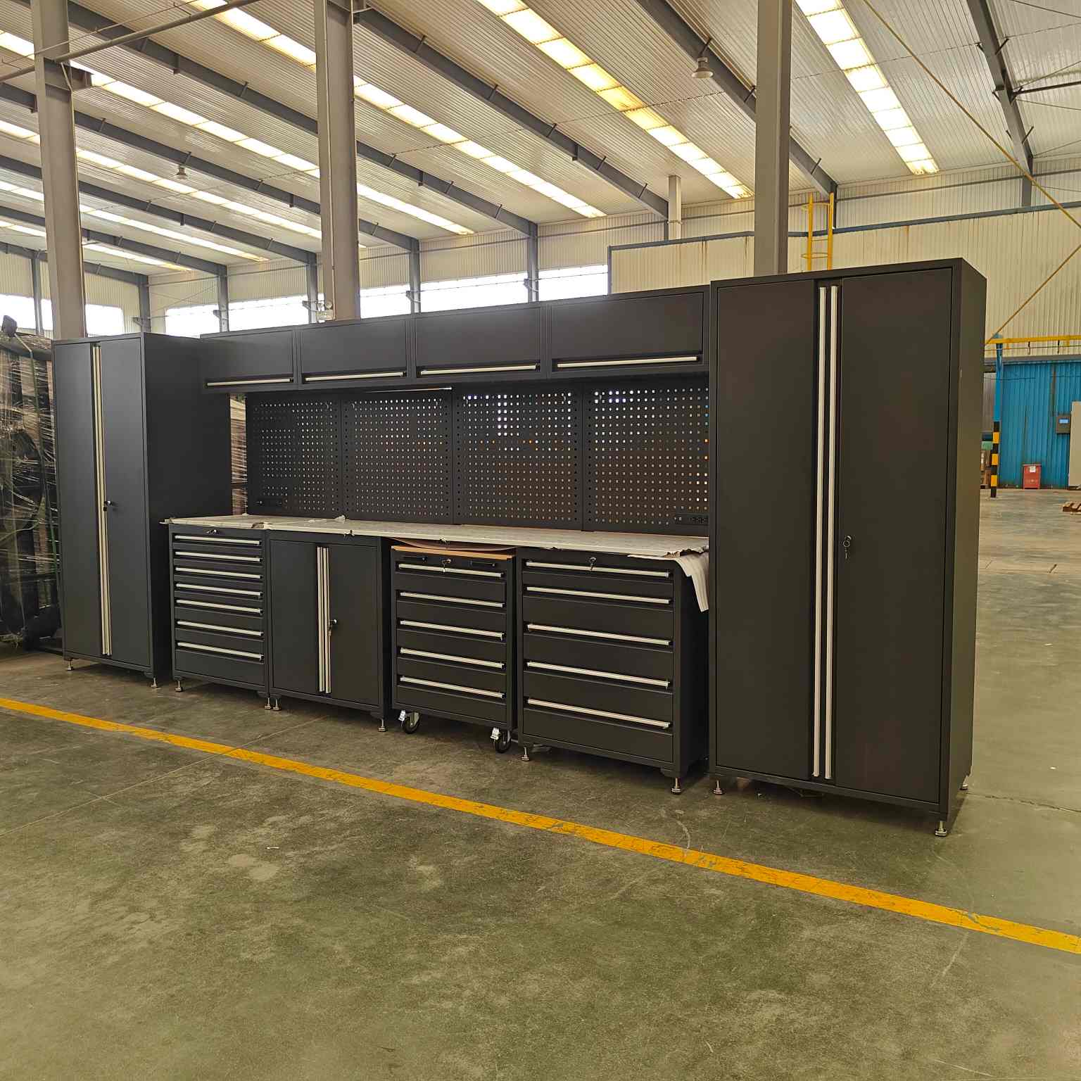 1. குளிர்ந்த உருட்டப்பட்ட ஸ்டீல் கேரேஜ் அமைச்சரவை தொகுப்பு தினசரி பயன்பாட்டைத் தாங்குகிறது, கனமான கருவி தொகுப்புகளை வைத்திருக்கிறது, வாடிக்கையாளர்களுக்கு சுத்தமான, தொழில்முறை தோற்றத்தை பராமரித்தல்.