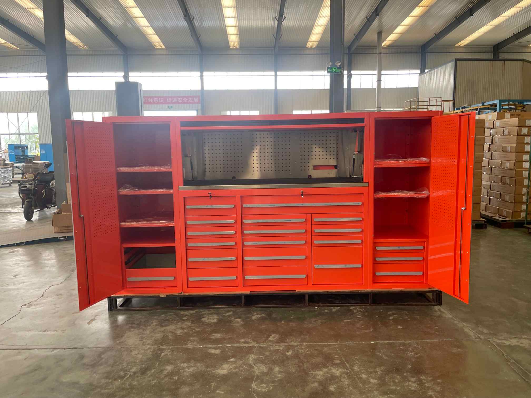 பாதுகாப்பான சேமிப்பு: மத்திய பூட்டுதல் அமைப்பு கருவிகளை பாதுகாப்பாகவும் ஒழுங்காகவும் வைத்திருக்கிறது.