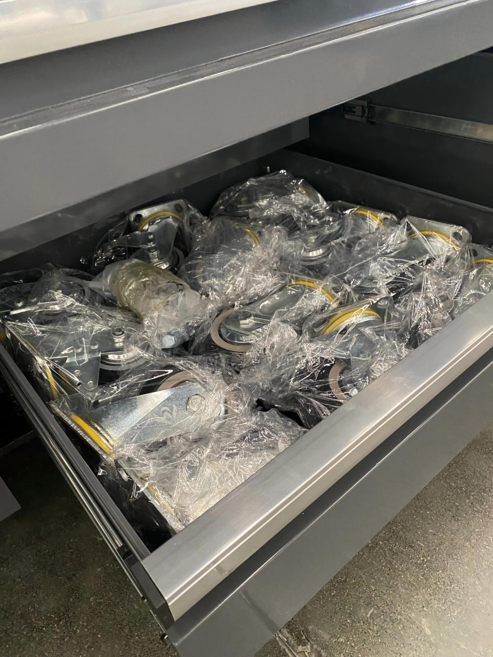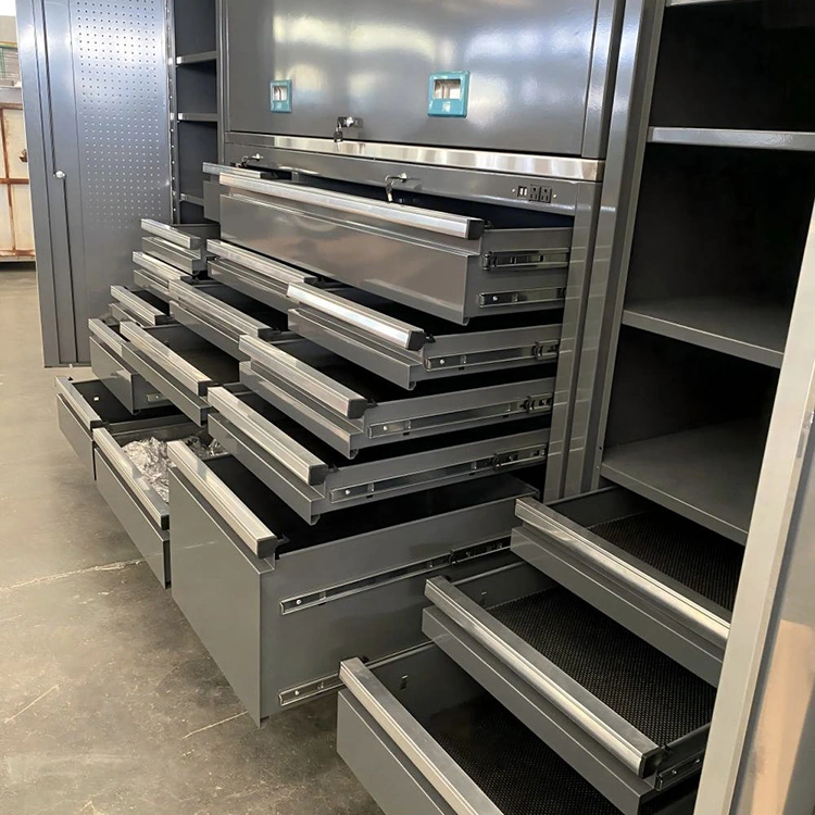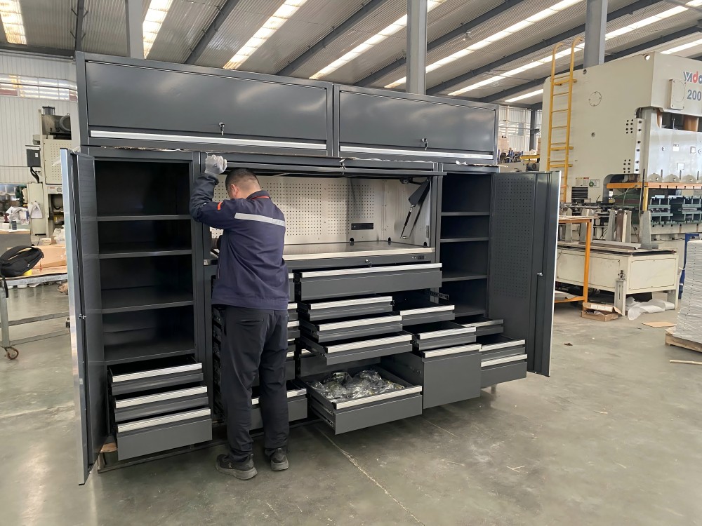 மட்டு மற்றும் தனிப்பயனாக்கப்பட்ட வடிவமைப்பு இல்லாத சேர்க்கை: புதிய வடிவமைப்பு கேரேஜ் பெட்டிகளும் சுவர் பெட்டிகளும், மாடி பெட்டிகளும், கருவி சுவர்களும் போன்ற தொகுதிகளை இலவசமாகப் பிரிப்பதை ஆதரிக்கின்றன, ஒற்றை/இரட்டை கேரேஜ் இடைவெளிகளுக்கு ஏற்றது, கருவி வகைப்பாடு மற்றும் சன்ட்ரீஸ் சேமிப்பகத்திற்காக வெவ்வேறு பயனர்களின் வேறுபட்ட தேவைகளைப் பூர்த்தி செய்தல். கட்டமைப்பு மற்றும் பொருள் மேம்படுத்தல்-தாங்கி வலுவூட்டல்: புதிய வடிவமைப்பு கேரேஜ் பெட்டிகளும் 1.5 மிமீ குளிர்-உருட்டப்பட்ட எஃகு தட்டு சட்டகத்தை ஏற்றுக்கொள்கின்றன, இது 150 கிலோ ஒற்றை அடுக்கு சுமை தாங்கும் திறன் கொண்டது, இது சாதாரண சேமிப்பு பெட்டிகளை விட 50% அதிகமாகும், மேலும் கனமான கருவிகள் மற்றும் உபகரணங்களை சேமிப்பதற்கு ஏற்றது. ஈரப்பதமான அல்லது தூசி நிறைந்த சூழல்களுக்கு ஏற்றது; அமைச்சரவை கதவு கீல்கள் 50,000 திறப்பு மற்றும் நிறைவு சோதனைகளை கடந்துவிட்டன, மேலும் ஆயுட்காலம் 3 முறை நீட்டிக்கப்பட்டுள்ளது.