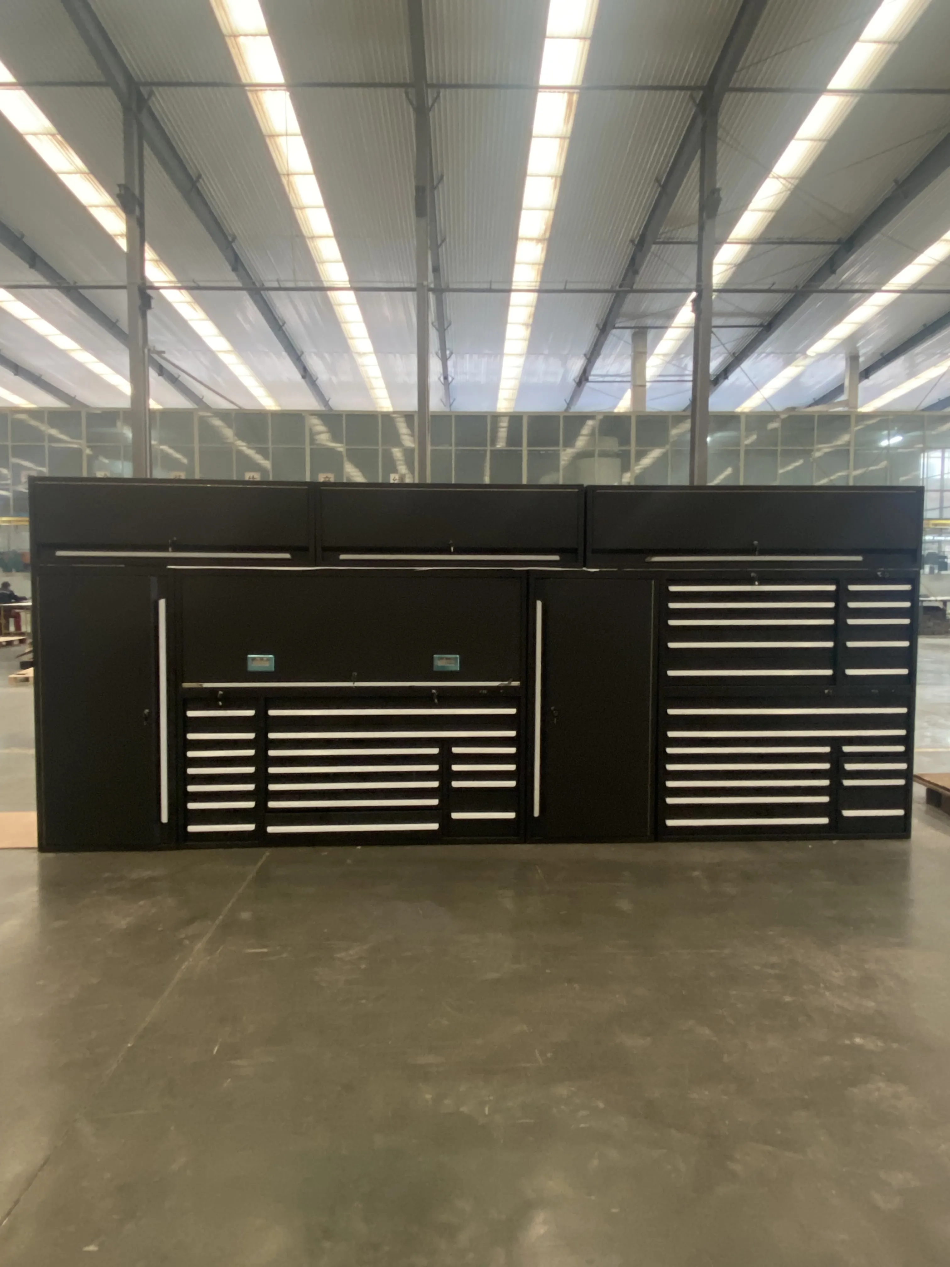 நெகிழ்வான மட்டு வடிவமைப்பு இல்லாத சேர்க்கை: புதிய மட்டு கேரேஜ் அமைச்சரவை ஒற்றை அமைச்சரவை மற்றும் மல்டி-அமைச்சரவை பிளவுபடுவதை ஆதரிக்கிறது, மேலும் வெவ்வேறு விண்வெளி தளவமைப்புகளுக்கு ஏற்ப பணிமனைகள், இழுப்பறைகள், தொங்கும் பலகைகள் மற்றும் பிற பாகங்கள் ஆகியவற்றுடன் பொருந்தலாம். வலுவான அளவிடுதல்: புதிய மட்டு கேரேஜ் அமைச்சரவை எதிர்கால தேவை மேம்பாடுகளை பூர்த்தி செய்ய தொகுதிகளைச் சேர்ப்பதன் மூலம் சேமிப்பக இடத்தின் கிடைமட்ட அல்லது செங்குத்து விரிவாக்கத்தை அடைய முடியும். வலுவான மற்றும் நீடித்த பொருள்-மெட்டீரியல் தேர்வு: புதிய மட்டு கேரேஜ் அமைச்சரவை குளிர்-உருட்டப்பட்ட எஃகு தட்டு அல்லது அலுமினிய அலாய் சட்டகம், மேற்பரப்பு தூள் பூசப்பட்ட/எலக்ட்ரோஃபோரெடிக் சிகிச்சையளிக்கப்பட்ட, துரு-ஆதாரம் மற்றும் கீறல்-எதிர்ப்பு, மற்றும் 80 கிலோ/டிராயர் வரை தாங்க முடியும். உள்ளமைவு சேமிப்பு: மதிப்புமிக்க கருவிகள் அல்லது உபகரணங்களைப் பாதுகாக்க புதிய மட்டு கேரேஜ் அமைச்சரவை முழுமையாக பூட்டப்பட்ட அமைச்சரவை கதவுகள் மற்றும் எதிர்ப்பு வடிவமைப்பு. வடிவமைப்பு, ஈரப்பதமான, தூசி நிறைந்த அல்லது உயர் வெப்பநிலை சூழல்களுக்கு ஏற்றது (கேரேஜ்கள் மற்றும் பழுதுபார்க்கும் பட்டறைகள் போன்றவை)