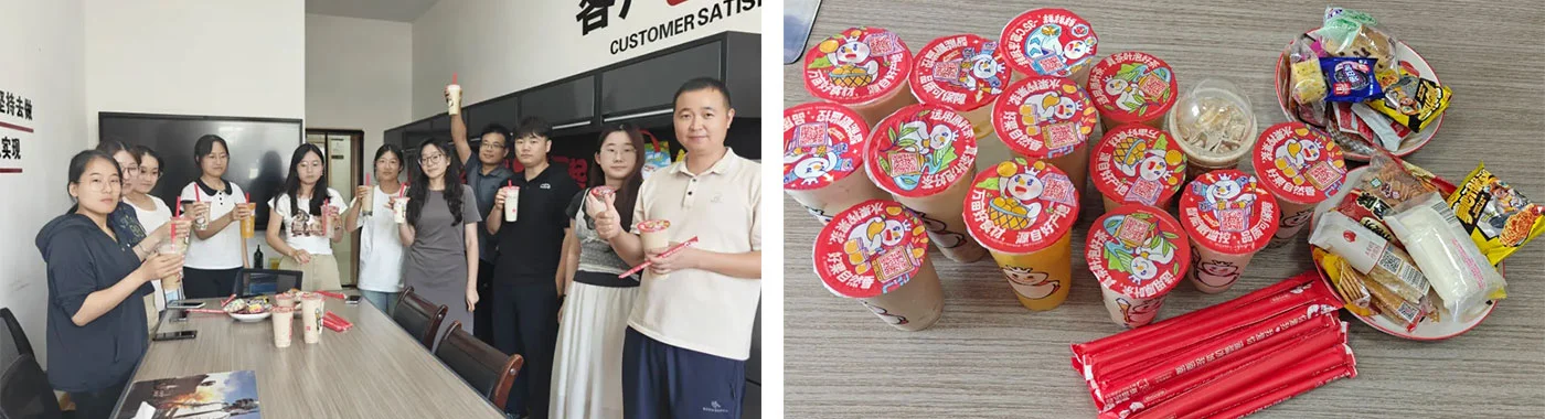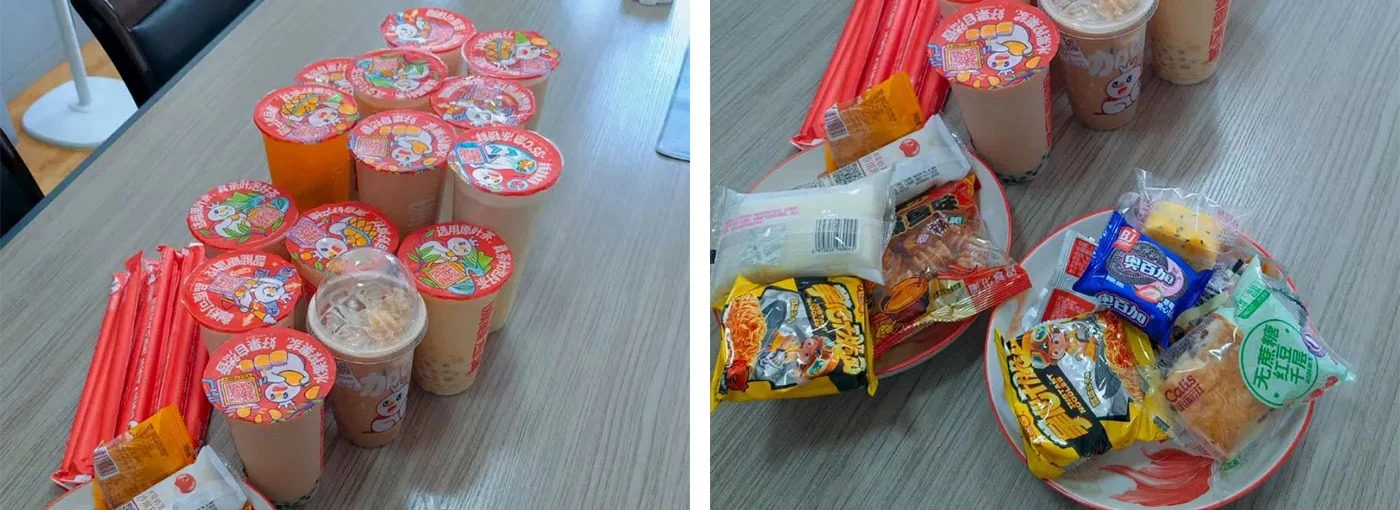 ஆகஸ்ட் 7 ஆம் தேதி. முத்து பால் தேநீர், பழ தேநீர் மற்றும் பால் தொப்பி தேநீர் போன்ற பல்வேறு வகைகளை உள்ளடக்கிய மேலாளர் வு ஊழியர்களின் சுவை விருப்பங்களை முன்கூட்டியே சேகரித்தார். புதிய பானங்களை வழங்குவதை உறுதி செய்வதற்காக அவர்கள் நன்கு அறியப்பட்ட பால் தேயிலை பிராண்டுகளுடன் ஒத்துழைத்தனர். இலையுதிர்காலத்தின் தொடக்கத்தின் பிற்பகலில், ஒவ்வொரு துறைக்கும் நேர்த்தியாக தொகுக்கப்பட்ட பால் தேநீர் மேலாளர் வு மூலம் விநியோகிக்கப்பட்டது.