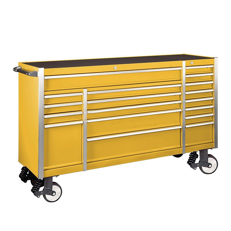 ரோலிங் கருவி அமைச்சரவை பட்டறைகள் அல்லது கேரேஜ்களில் எளிதாக நகர்த்துவதற்காக வடிவமைக்கப்பட்டுள்ளது, பொருத்தப்பட்ட ஆமணக்கு சக்கரங்களுக்கு நன்றி, அவற்றில் பல பிரேக்குகளுடன் அமைச்சரவையை ஒரு முறை நிலைநிறுத்திய இடத்தில் பூட்டவும், இயக்கம் நிலைத்தன்மையுடன் சமநிலையை சமநிலைப்படுத்தவும்.